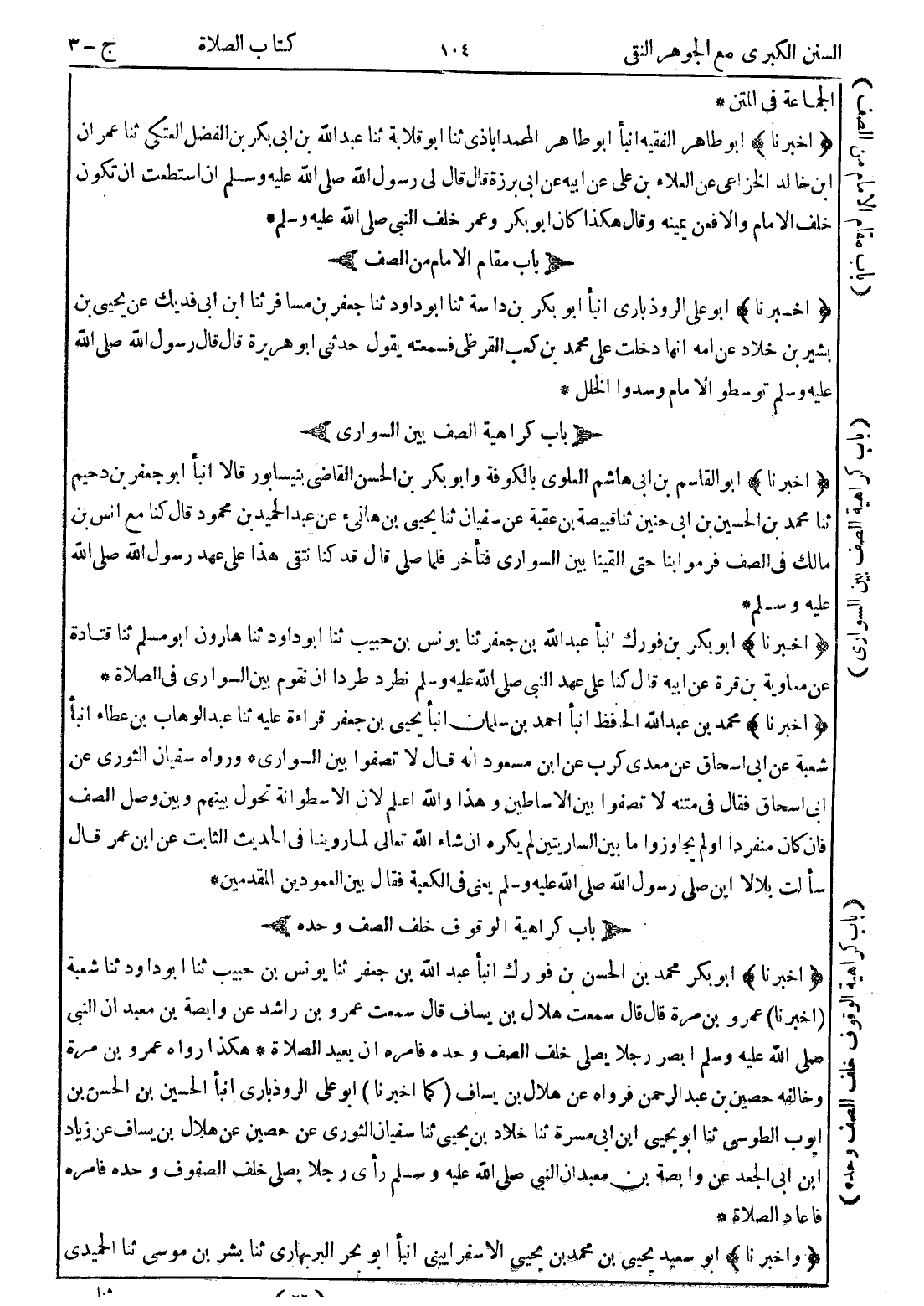 عن معاوية بن قرة عن ابيه قال كنا على عهد النبي صلى الله عليه وسلم نطرد طردا ان نقوم بين السواري في الصلاة *