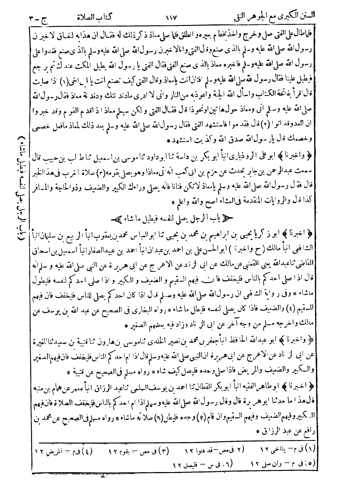 (أخبرنا) أبو علي الروذباري انبأ أبو بكر بن داسة ثنا أبو داود ثنا موسى بن اسمعيل ثنا طالب بن حبيب قال سمعت عبد الرحمن بن جابر يحدث عن حزم بن ابي كعب انه اتى معاذا وهو يصلي بقومه (3) صلاة المغرب في هذا الخبر قال فقال رسول الله صلى الله عليه وسلم يا معاذ لا تكن فتانا فإنه يصلي وراءك الكبير والضعيف وذو الحاجة والمسافر كذا قال والروايات المتقدمة في العشاء اصح والله اعلم *