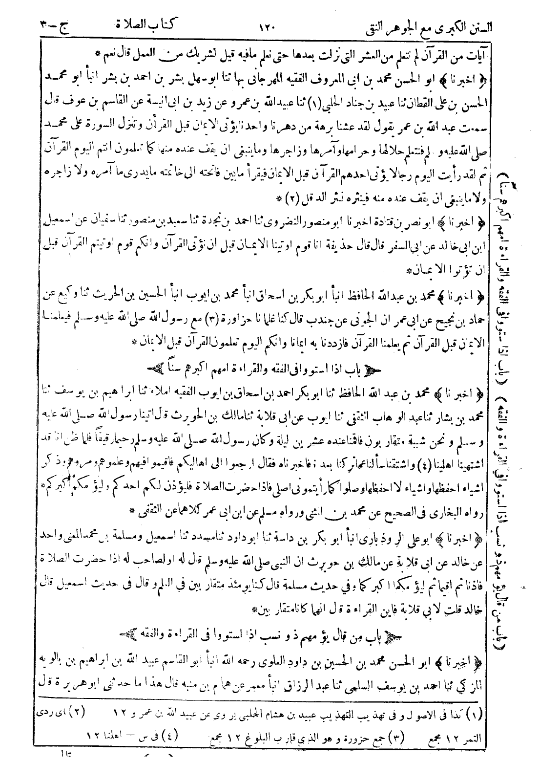 (أخبرنا) محمد بن عبد الله الحافظ انبأ أبو بكر بن اسحاق انبأ محمد بن ايوب انبأ الحسين بن الحريث ثنا وكيع عن حماد بن نجيح عن ابي عمران الجوني عن جندب قال كنا غلمانا حزاورة (3) مع رسول الله صلى الله عليه وسلم فيعلمنا الايمان قبل القرآن ثم يعلمنا القرآن فازددنا به ايمانا وانكم اليوم تعلمون القرآن قبل الايمان *