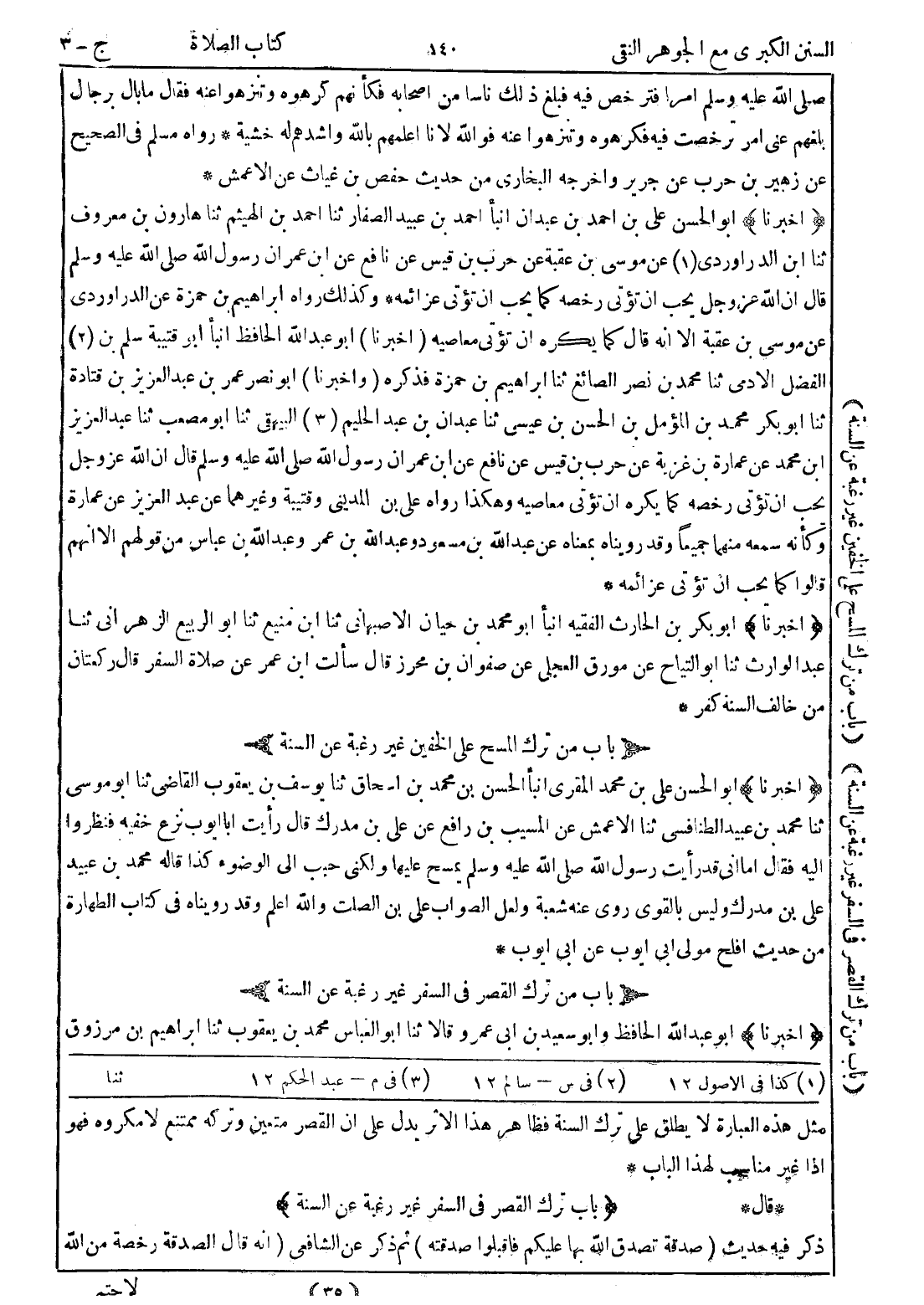 مثل هذه العبارة لا يطلق على ترك السنة فظاهر هذا الاثر يدل على ان القصر متعين وتركه ممتنع لا مكروه فهو إذا غير مناسب لهذا الباب * * قال * (باب ترك القصر في السفر غير رغبة عن السنة) ذكر فيه حديث (صدقة تصدق الله بها عليكم فاقبلوا صدقته) ثم ذكر عن الشافعي (انه قال الصدقة رخصة من الله