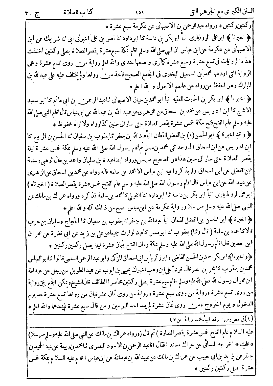 عليه السلام عام الفتح خمس عشرة يقصر الصلوة) ثم قال (ورواه عراك بن مالك عن النبي صلى الله عليه وسلم مرسلا) * قلت * اخرجه النسائي عن عراك مسندا فقال انا عبد الرحمن بن الاسود البصري ثنا محمد بن ربيعة عن عبد الحميد بن جعفر عن يزيد بن أبى حبيب عن عراك بن مالك عن عبيد الله بن عبد الله عن ابن عباس اقام عليه السلام بمكة خمس عشرة يصلى ركعتين ركعتين *