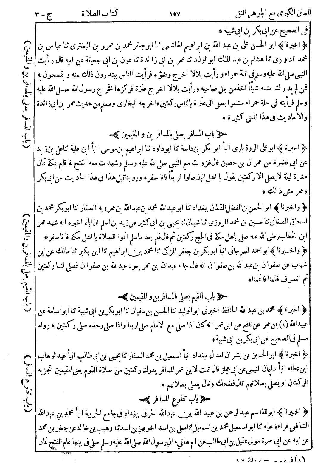 (أخبرنا) أبو الحسين بن بشران العدل ببغداد انبأ اسمعيل بن محمد الصفار ثنا يحيى بن ابي طالب انبا عبد الوهاب ابن عطاء انبأ سليمان التيمي عن ابي مجلز قال قلت لابن عمر المسافر يدرك ركعتين من صلاة القوم يعني المقيمين اتجزيه الركعتان أو يصلي بصلاتهم قال فضحك وقال يصلي بصلاتهم *