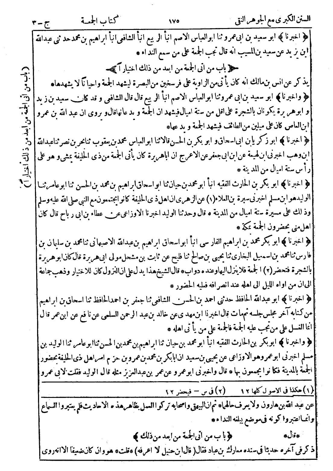 عن عبد الله بن هارون ولا يعرف حالهما * ثم ان البيهقى واصحابه تركوا العمل بظاهر هذه الاحاديث فلم يعتبروا السماع وانما اعتبروا كونه في موضع يبلغه النداء * * قال * {باب من اتى الجمعة من ابعد من ذلك} ذكر في آخره حديثا في سنده معارك بن عباد فقال (قال ابن حنبل لا اعرفه) * قلت * هو وان كان ضعيفا الا انه روى