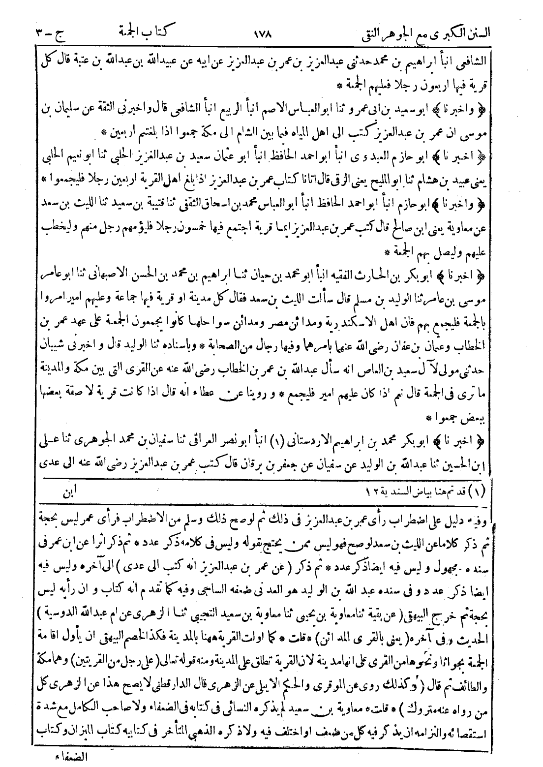 وفيه دليل على اضطراب رأى عمر بن عبد العزيز في ذلك ثم لو صح ذلك وسلم من الاضطراب فرأى عمر ليس بحجة ثم ذكر كلاما عن الليث بن سعد لو صح فهو ليس ممن يحتج بقوله وليس في كلامه ذكر عدد * ثم ذكر اثرا عن ابن عمر في سنده مجهول وليس فيه ايضا ذكر عدد * ثم ذكر (عن عمر بن عبد العزيز انه كتب إلى عدى) إلى آخره وليس فيه ايضا ذكر عدد وفى سنده عبد الله بن الوليد هو العدنى ضعفه الساجى وفيه كما تقدم انه كتاب وان رأيه ليس