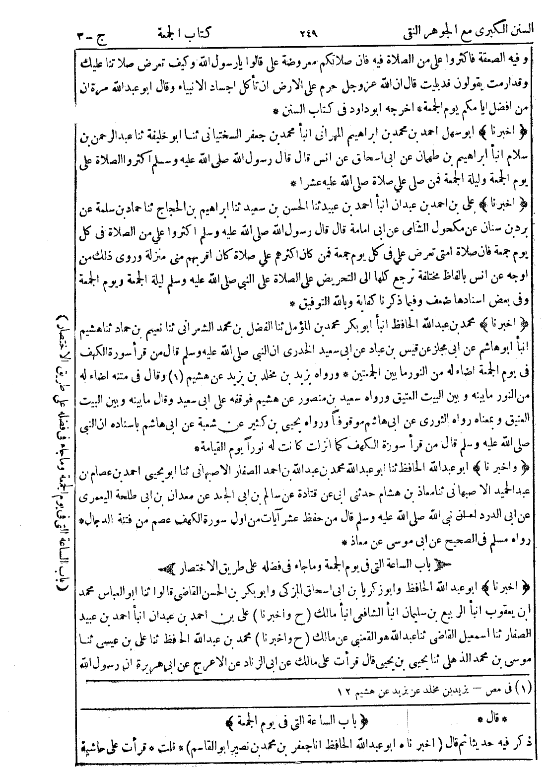 * قال * {باب الساعة التى في يوم الجمعة} ذكر فيه حديثا ثم قال (اخبرناه أبو عبد الله الحافظ انا جعفر بن محمد بن نصير أبو القاسم) * قلت * قرأت على حاشية