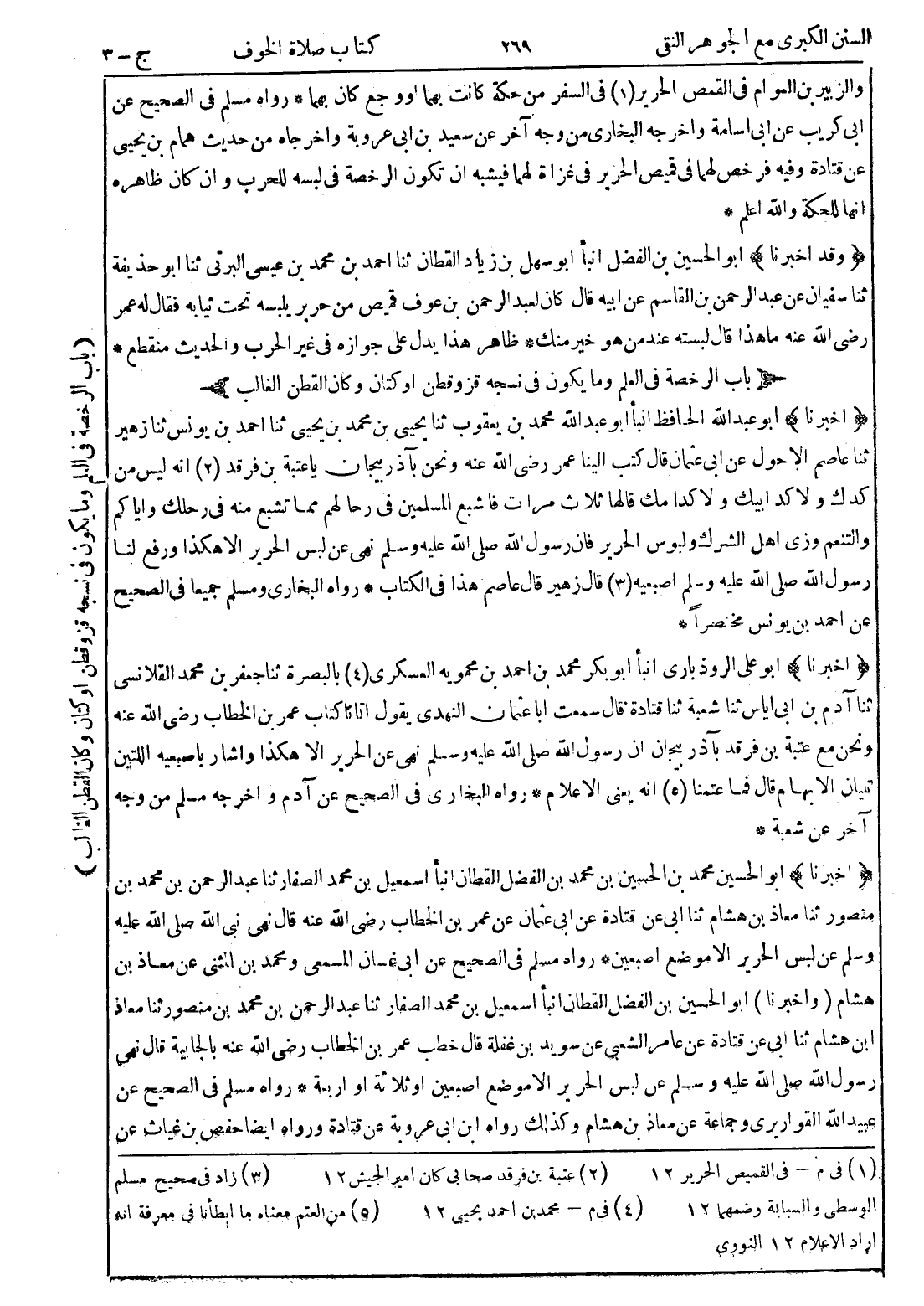 (1) في م - في القميص الحرير 12 (2) عتبة بن فرقد صحابي كان امير الجيش 12 (3) زاد في صحيح مسلم الوسطى والسبابة وضمهما 12 (4) في م - محمد بن احمد يحيى 12 (5) من العتم معناه ما ابطأنا في معرفة انه اراد الاعلام 12 النووي [ * ]
