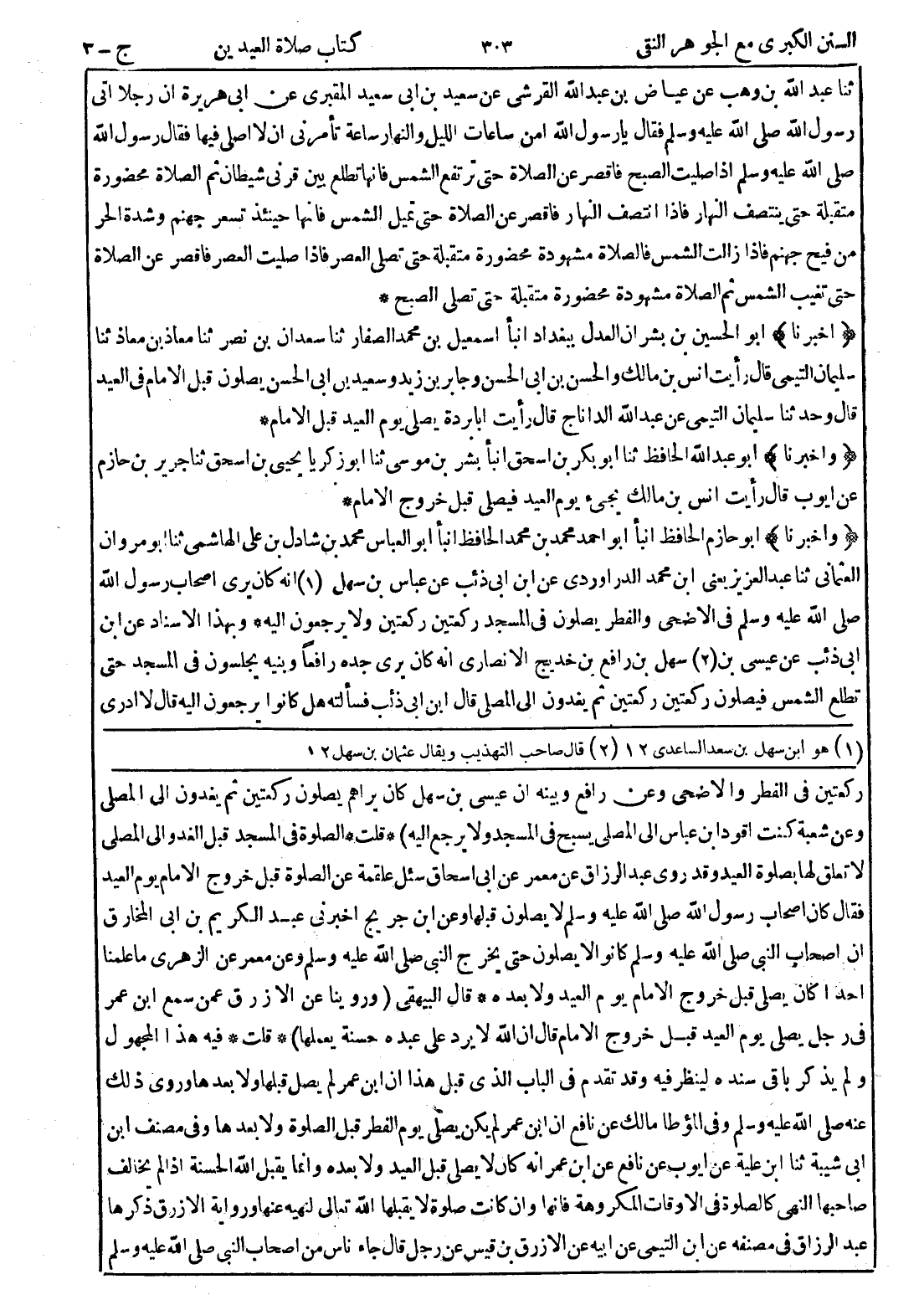 ولم يذكر باقى سنده لينظر فيه وقد تقدم في الباب الذى قبل هذا ان ابن عمر لم يصل قبلها ولا بعدها وروى ذلك عنه صلى الله عليه وسلم وفى المؤطا مالك عن نافع ان ابن عمر لم يكن يصلى يوم الفطر قبل الصلوة ولا بعدها وفى مصنف ابن ابى شيبة ثنا ابن علية عن ايوب عن نافع عن ابن عمر انه كان لا يصلى قبل العيد ولا بعده وانما يقبل الله الحسنة إذا لم يخالف صاحبها النهى كالصلوة في الاوقات المكروهة فانها وان كانت صلوة لا يقبلها الله تعالى لنهيه عنها ورواية الازرق ذكرها عبد الرزاق في مصنفه عن ابن التيمى عن ابيه عن الازرق بن قيس عن رجل قال جاء ناس من اصحاب النبي صلى الله عليه وسلم