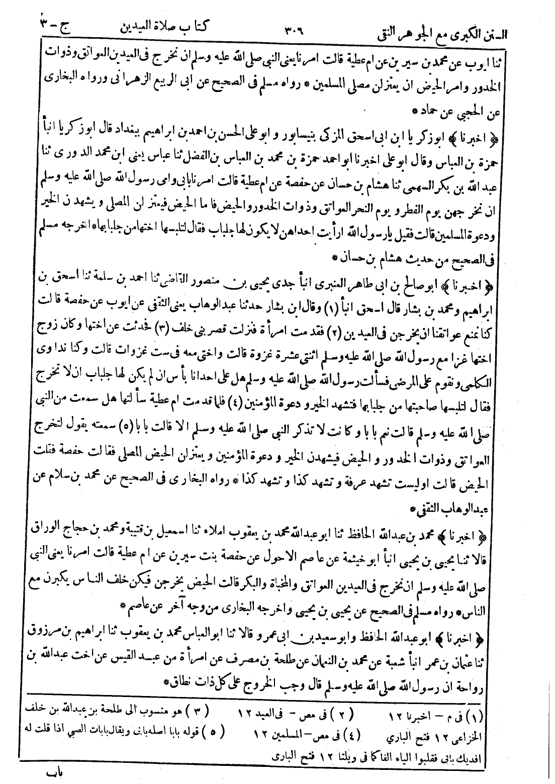 (1) في م - اخبرنا 12 (2) في مص - في العيد 12 (3) هو منسوب إلى طلحة بن عبد الله بن خلف الخزاعى 12 فتح الباري (4) في مص - المسلمين 12 (5) قوله بابا اصله بابى ويقال بابات الصبى إذا قلت له افديك بابى فقلبوا الياء الفا كما في ويلتا 12 فتح الباري [ * ]
