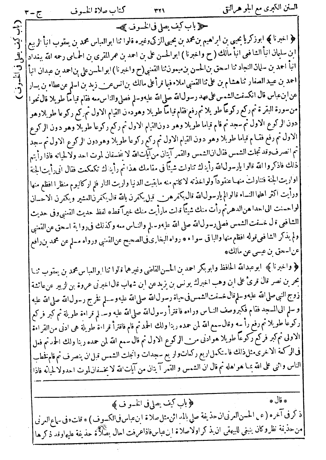 * قال * {باب كيف يصلى في الخسوف} ذكر في آخره (عن الحسن العرنى ان حذيفة صلى بالمدائن مثل صلاة ابن عباس في الكسوف) * قلت * في سماع العرنى من حذيفة نظر وكان ينبغى للبيهقي ان يذكر اولا صلاة ابن عباس فإذا عرفت احال بصلاة حذيفة عليها وقد ذكرها