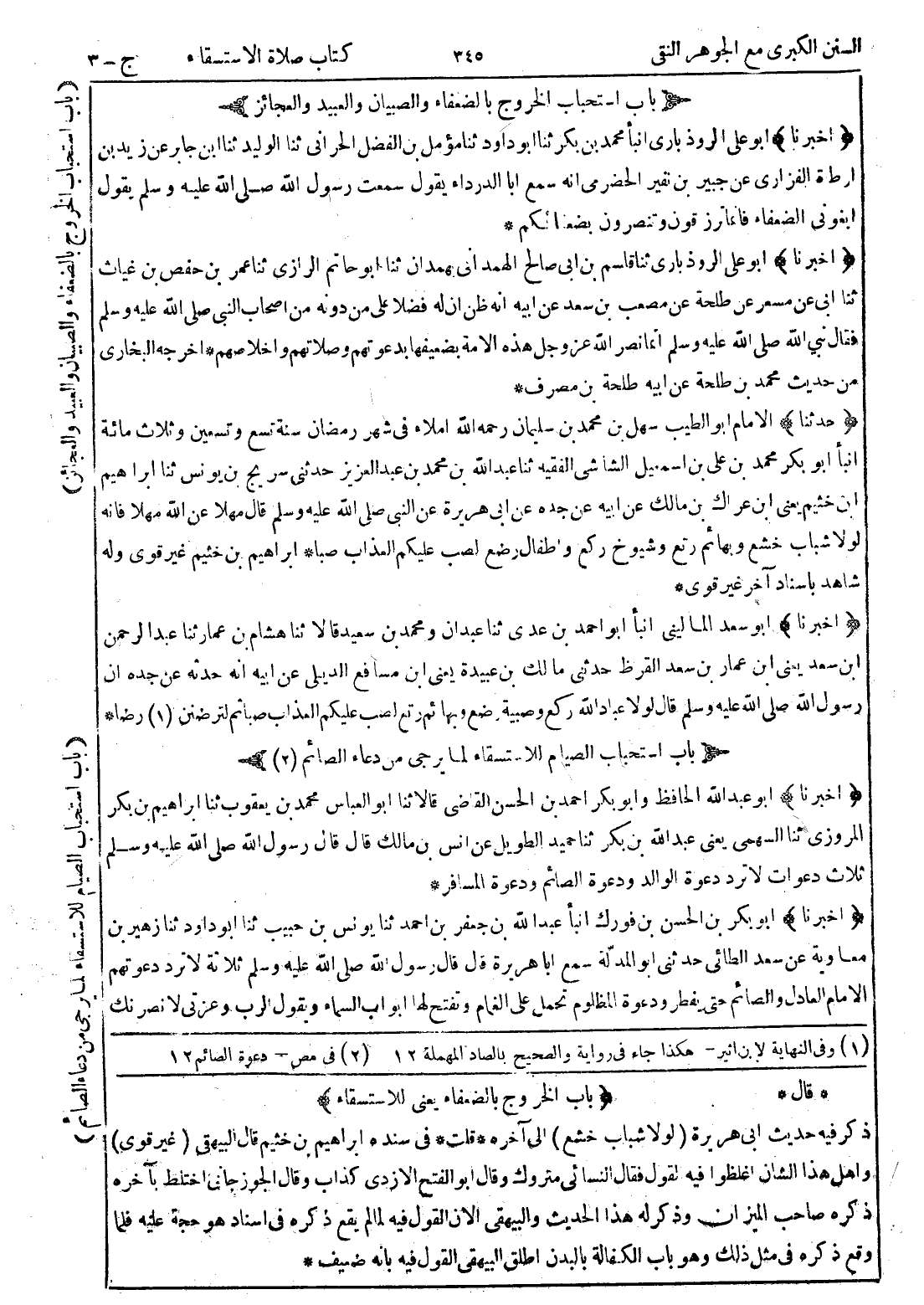 * قال * {باب الخروج بالضعفاء يعنى للاستقساء} ذكر فيه حديث ابى هريرة (لولا شباب خشع) إلى آخره * قلت * في سنده ابراهيم بن خثيم قال البيهقى (غير قوى) واهل هذا الشان اغلظوا فيه القول؟؟ فقال النسائي متروك وقال أبو الفتح الازدي كذاب وقال الجوزجانى اختلط بآخره ذكره صاحب الميزان وذكر له هذا الحديث والبيهقي الان القول فيه لما لم يقع ذكره في اسناد هو حجة عليه فلما وقع ذكره في مثل ذلك وهو باب الكفالة بالبدن اطلق البيهقى القول فيه بانه ضعيف *