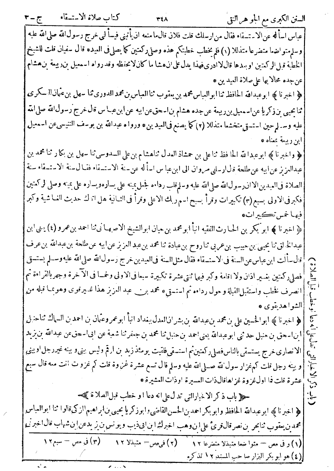 (وأخبرنا) أبو عبد الله الحافظ ثنا علي بن حمشاذ العدل ثنا هشام بن علي السدوسي ثنا سهل بن بكار ثنا محمد بن عبد العزيز عن ابيه عن طلحة قال ارسلني مروان إلى ابن عباس اسأله عن سنة الاستسقاء فقال سنة الاستسقاء سنة الصلاة في العيدين الا ان رسول الله صلى الله عليه وسلم قلب رداءه فجعل يمينه على يساره ويساره على يمينه وصلى لركعتين فكبر في الاولى بسبع (3) تكبيرات وقرأ بسبح اسم ربك الاعلى وقرأ في الثانية هل اتاك حديث الغاشية وكبر فيها خمس تكبيرات *
