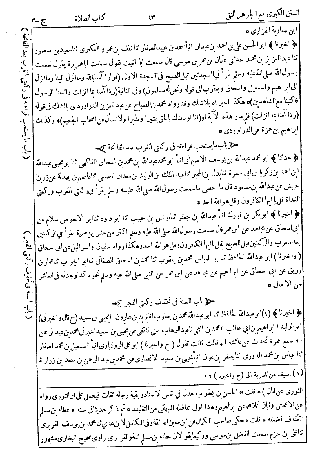 الثوري عن ابان) * قلت * الحسن بن يعقوب عدل في نفس الاسناد وبقية رجاله ثقات فيحمل على ان الثوري رواه عن الاعمش وابان كلاهما عن ابراهيم وهذا اولى مما فعله البيهقي من التغليط * ثم ذكر حديثا في سنده عطاء بن مسلم الخفاف فضعفه * قلت * حكى صاحب الكمال عن ابن معين انه ثقة وفي الكامل لابن عدي ثنا محمد بن يوسف الفربرى ثنا علي بن حزم سمعت الفضل بن موسى ووكيعا يقولان عطاء بن مسلم ثقة والفربري راوي صحيح البخاري مشهور