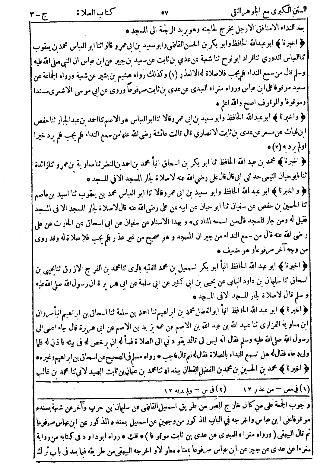 وجوب الجمعة على من كان خارج المصير من طريق اسماعيل القاضي عن سليمان بن حرب وآخر عن شعبة بسنده موقوفا على ابن عباس واخرجه في الباب المذكور من وجهين عن اسماعيل بسنده المذكور عن ابن عباس مرفوعا ثم قال البيهقي (ورواه مغراء العبدى عن عدي بن ثابت موقوفا) * قلت * رواه أبو داود في كتابه من رواية مغراء عن عدي عن جبير عن ابن عباس مرفوعا بمعناه مطولا واخرجه البيهقي من طريقه فيما بعد في باب ترك
