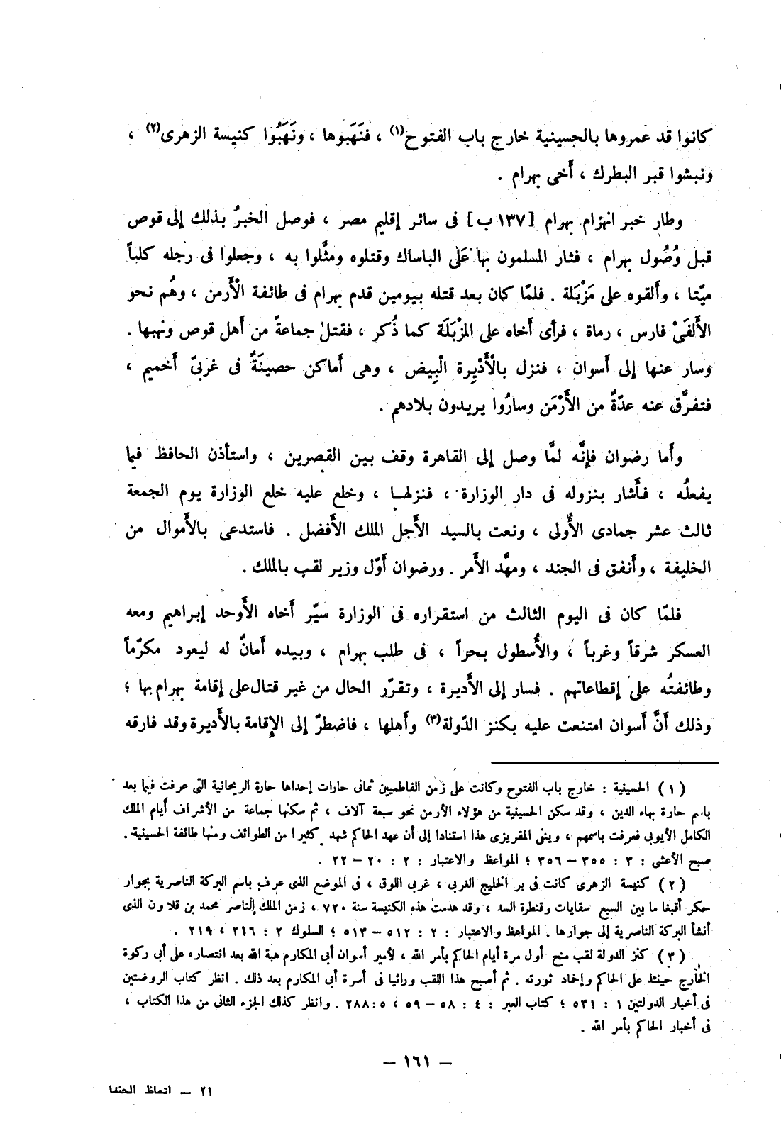 كانوا قد عمروها بالحسينية خارج باب الفتوح، فنهبوها، ونهبوا كنيسة الزهري، ونبشوا قبر البطرك، أخي بهرام.
