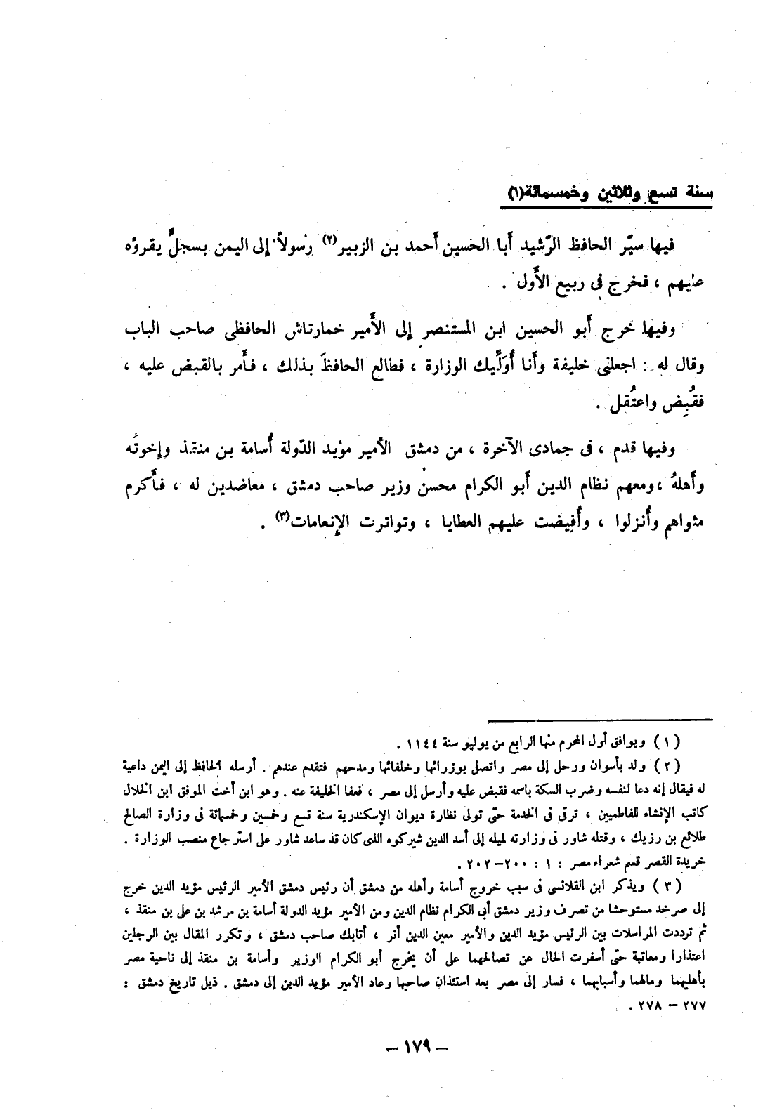 وفيها قدم، في جمادى الآخرة، من دمشق الأمير مؤيد الدولة أسامة بن منقذ وإخوته وأهله، ومعهم نظام الدين أبو الكرام محسن وزير صاحب دمشق، معاضدين له، فأكرم مثواهم وأنزلوا، وأفيضت عليهم العطايا، وتواترت الإنعامات.