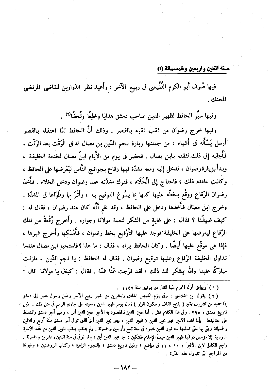 وفيها سير الحفاظ لظهير الدين صاحب دمشق هدايا وخلعاً وتحفاً.