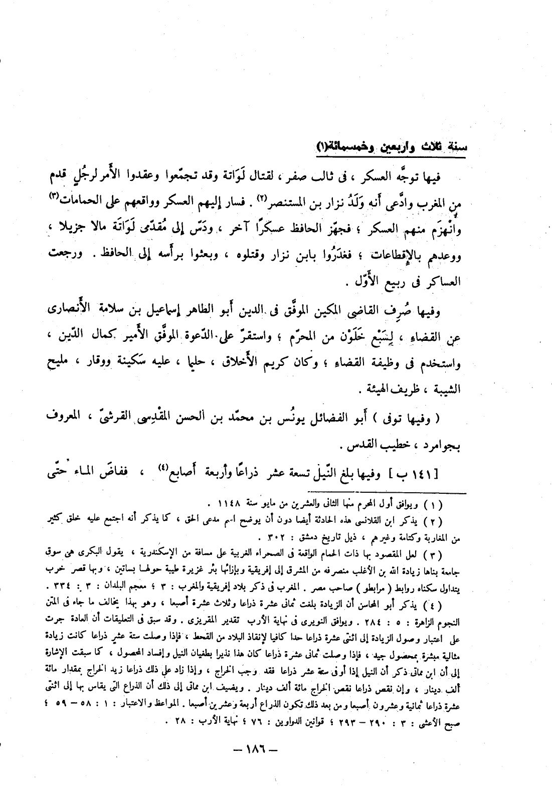 وفيها بلغ النيل تسعة عشر ذراعاً وأربعة أصابع، ففاض الماء حتى