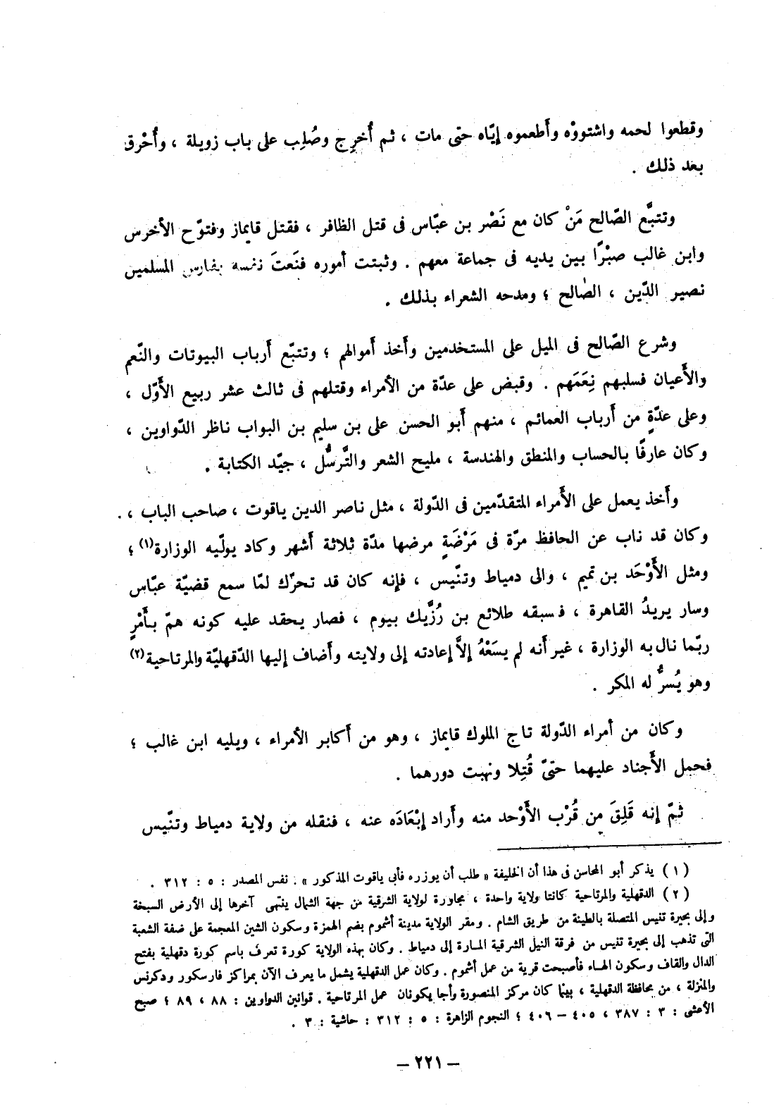 وشرع الصالح في الميل على المستخدمين وأخذ أموالهم؛ وتتبع أرباب البيوتات والنعم والأعيان فسلبهم نعمهم. وقبض على عدة من الأمراء وقتلهم في ثالث عشر ربيع الأول، وعلى عدة من أرباب العمائم، منهم أبو الحسن علي بن سليم بن البواب ناظر الدواوين، وكان عارفاً بالحساب والمنطق والهندسة، مليح الشعر والترسل، جيد الكتابة.
