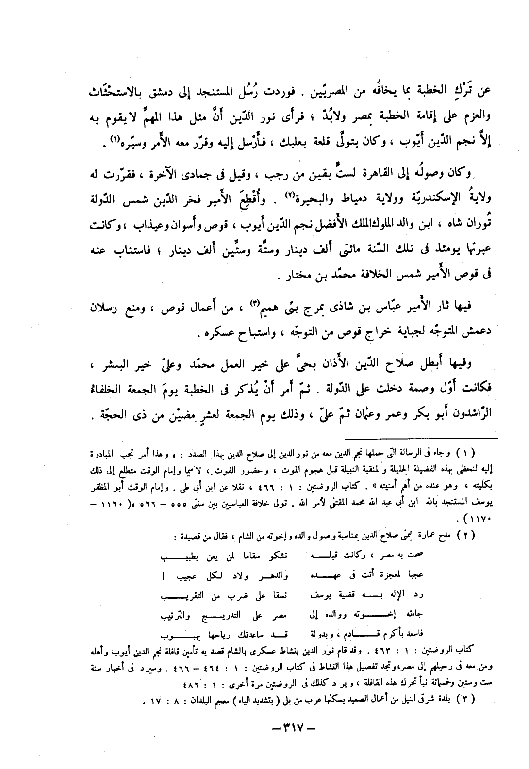 عن ترك الخطبة بما يخافه من المصريين. فوردت رسل المستنجد إلى دمشق بالاستحثاث والعزم على إقامة الخطبة بمصر ولا بد؛ فرأى نور الدين أن مثل هذا المهم لا يقوم به إلا نجم الدين أيوب، وكان يتولى قلعة بعلبك، فأرسل إليه وقرر معه الأمر وسيره.