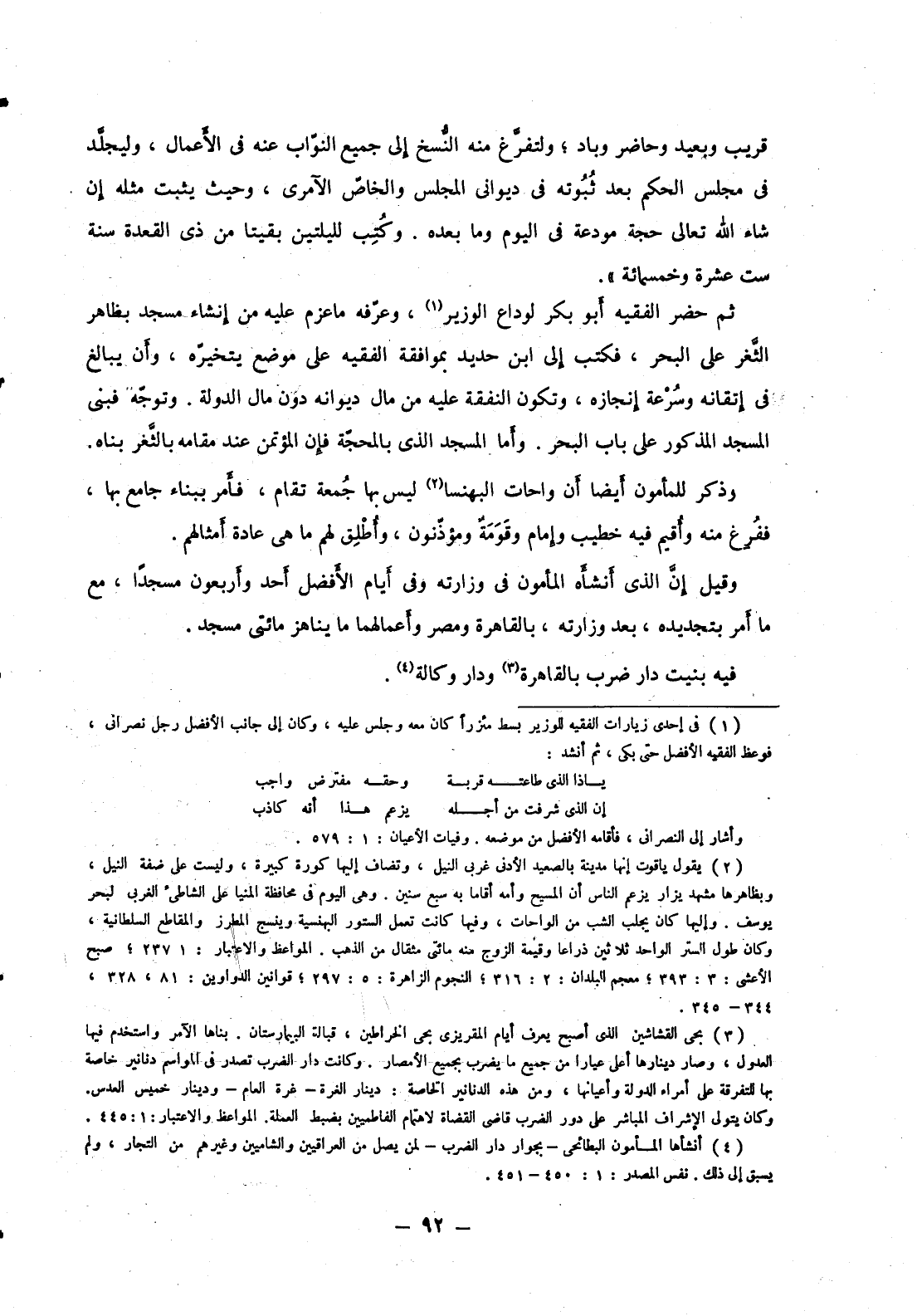 وقيل إن الذي أنشأه المأمون في وزارته وفي أيام الأفضل أحد وأربعون مسجداً، مع ما أمر بتجديده، بعد وزارته، بالقاهرة ومصر وأعمالهما ما يناهز مائتي مسجد.