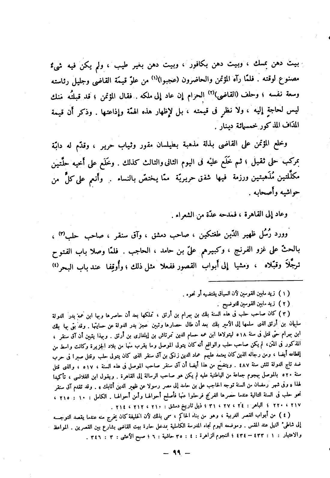 وورد رسل ظهير الدين طغتكين، صاحب دمشق، وآق سنقر، صاحب حلب، بالحث على غزو الفرنج، وكبيرهم علي بن حامد، الحاجب. فلما وصلا باب الفتوح ترجلا وقبلاه، ومشيا إلى أبواب القصور ففعلا مثل ذلك؛ وأوقفا عند باب البحر