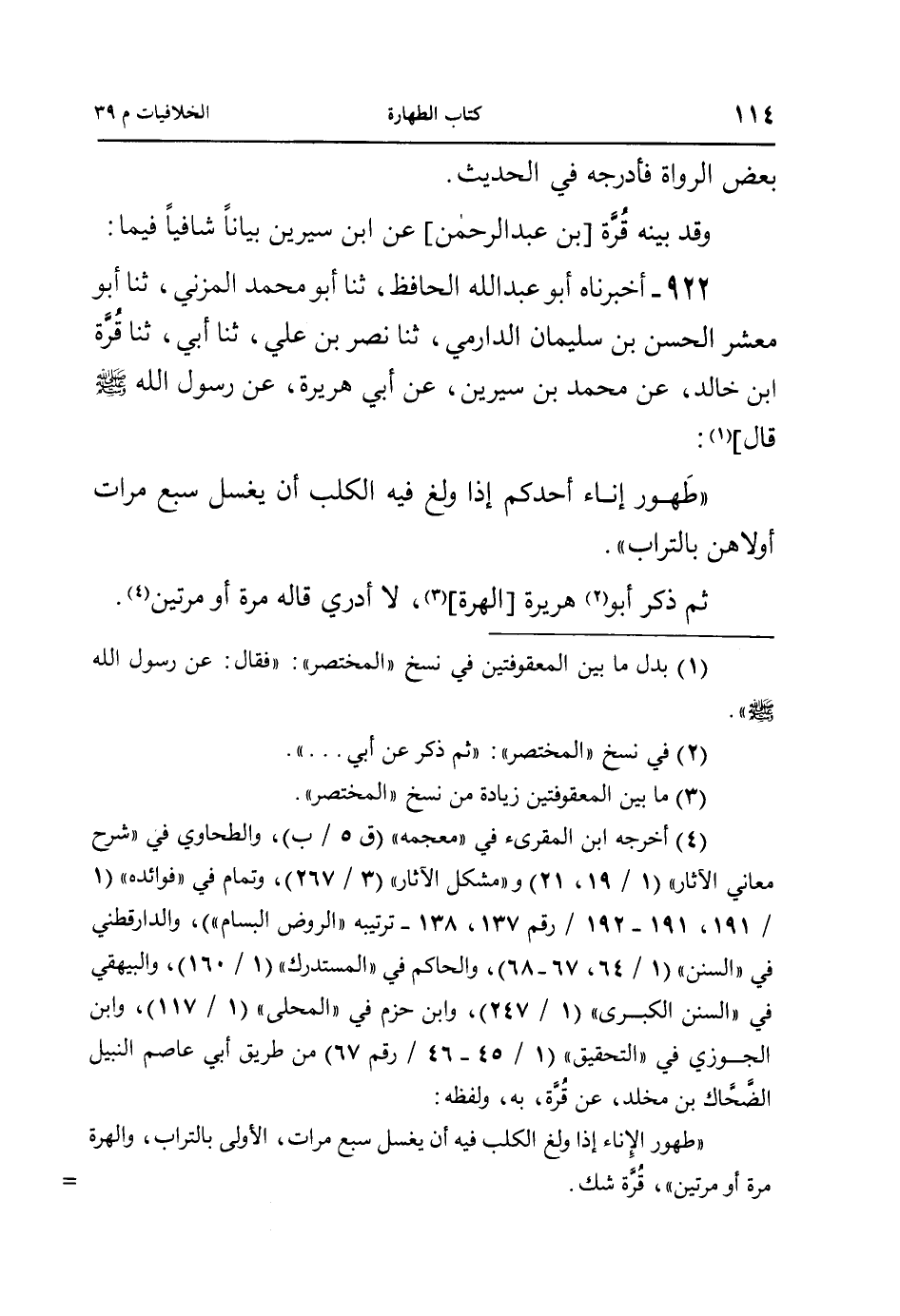 وقد بينه قرة [بن عبد الرحمن] عن ابن سيرين بياناً شافياً فيما: