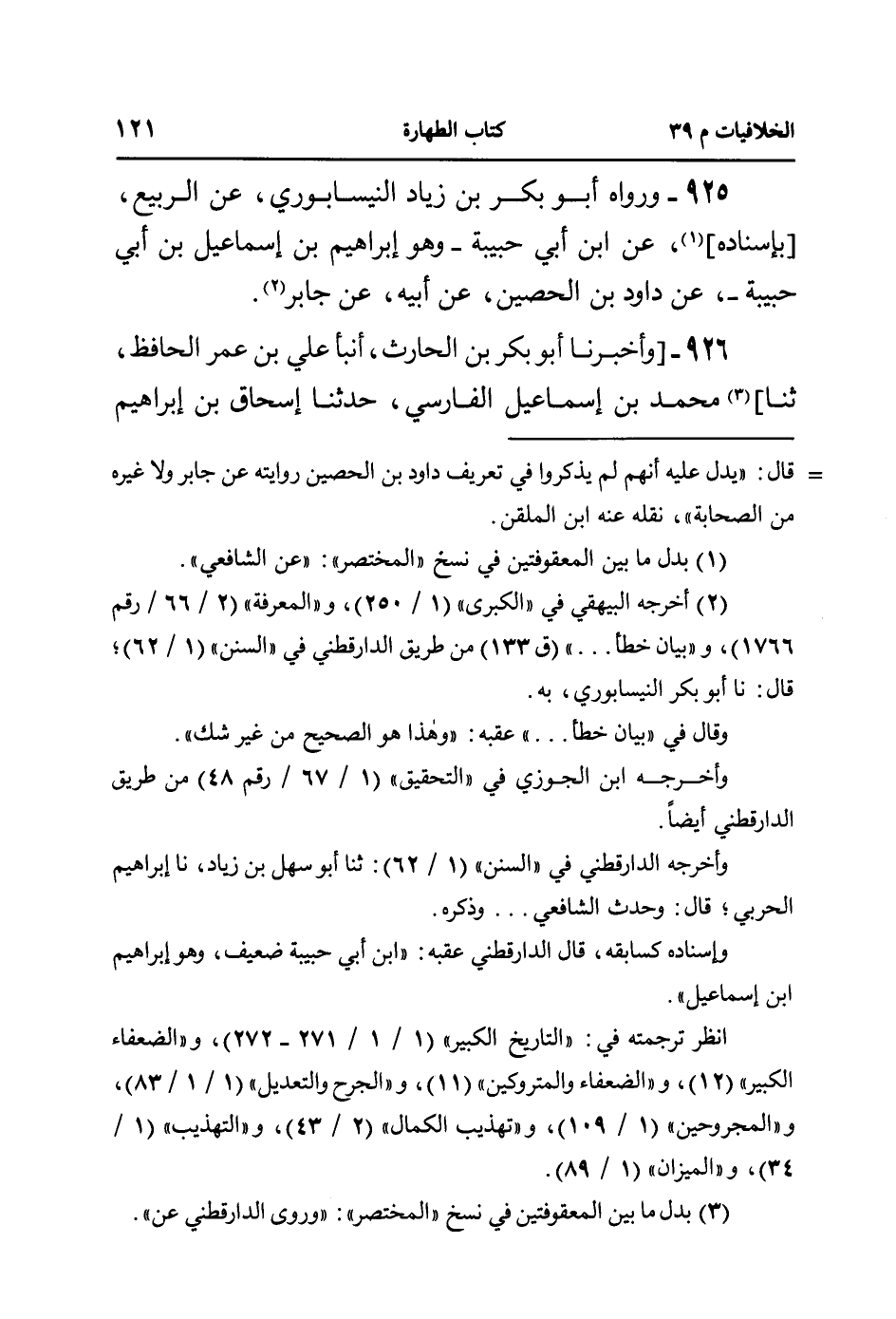 925- ورواه أبو بكر بن زياد النيسابوري، عن الربيع، [بإسناده]، عن ابن أبي حبيبة -وهو إبراهيم بن إسماعيل بن أبي حبيبة-، عن داود بن الحصين، عن أبيه، عن جابر.