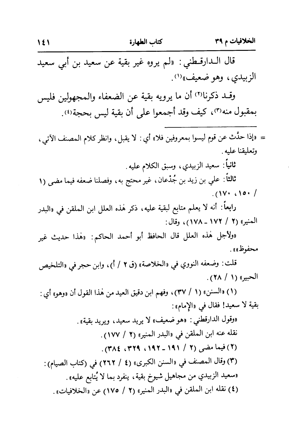 وقد ذكرنا أن ما يرويه بقية عن الضعفاء والمجهولين فليس بمقبول منه، كيف وقد أجمعوا على أن بقية ليس بحجة.