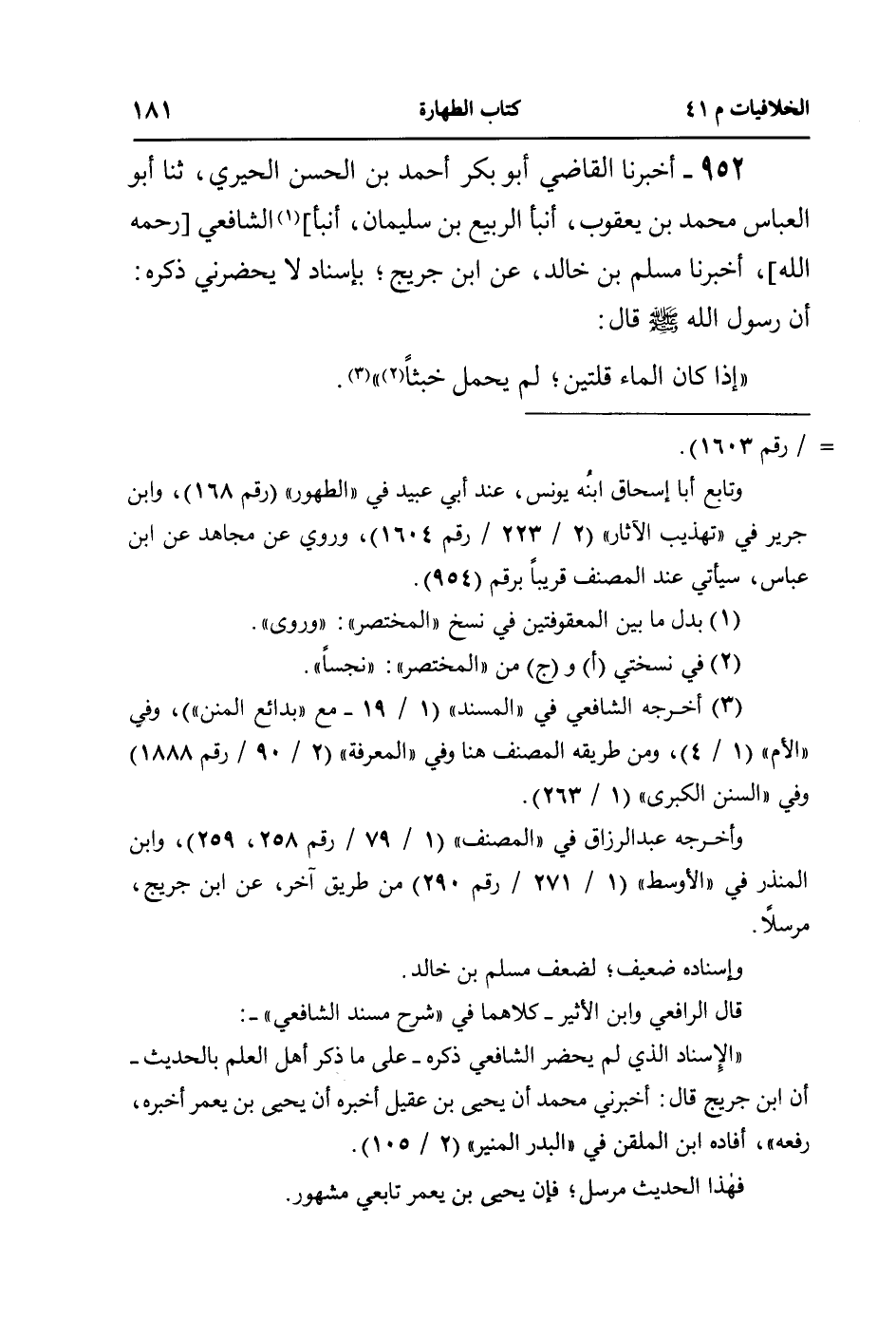 952- أخبرنا القاضي أبو بكر أحمد بن الحسن الحيري، ثنا أبو العباس محمد بن يعقوب، أنبأ الربيع بن سليمان، أنبأ] الشافعي [رحمه الله]، أخبرنا مسلم بن خالد، عن ابن جريج؛ بإسناد لا يحضرني ذكره: أن رسول الله صلى الله عليه وسلم قال: