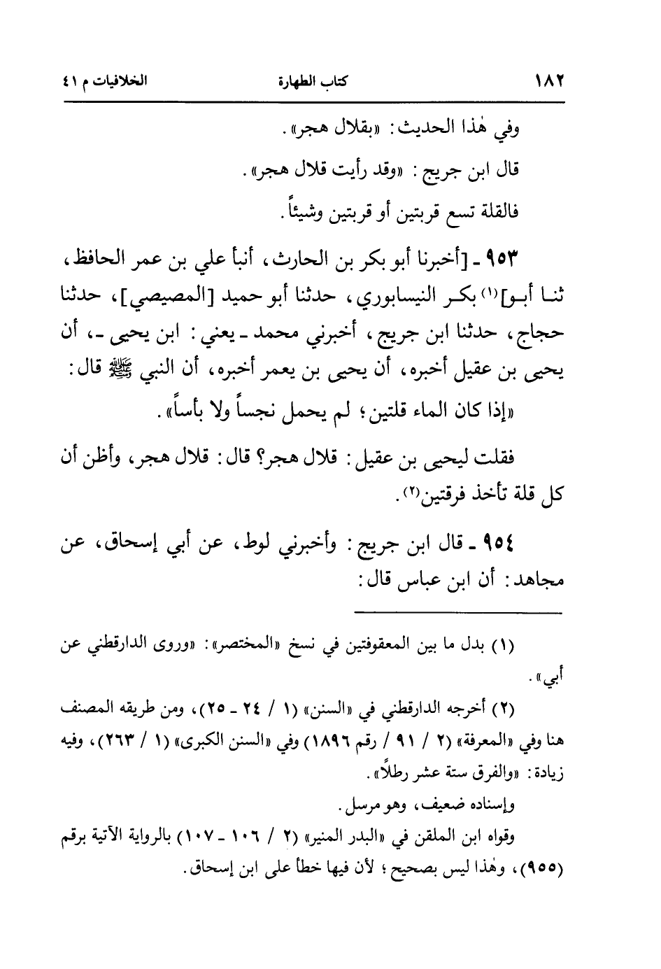 فقلت ليحيى بن عقيل: قلال هجر؟ قال: قلال هجر، وأظن أن كل قلة تأخذ فرقتين.
