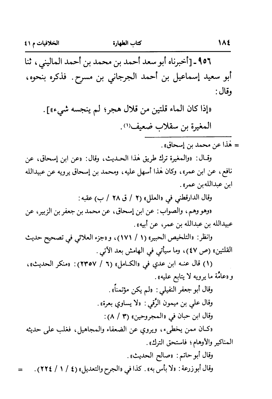 956- [أخبرناه أبو سعد أحمد بن محمد بن أحمد الماليني، ثنا أبو سعيد إسماعيل بن أحمد الجرجاني بن مسرح. فذكره بنحوه، وقال: