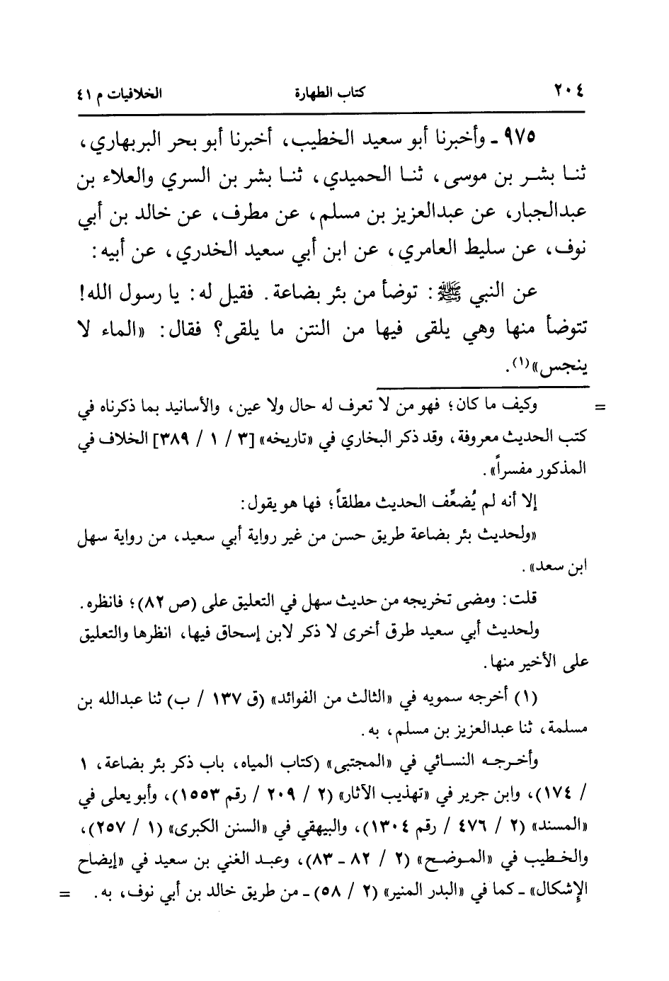 975- وأخبرنا أبو سعيد الخطيب، أخبرنا أبو بحر البربهاري، ثنا بشر بن موسى، ثنا الحميدي، ثنا بشر بن السري والعلاء بن عبد الجبار، عن عبد العزيز بن مسلم، عن مطرف، عن خالد بن أبي نوف، عن سليط العامري، عن ابن أبي سعيد الخدري، عن أبيه: