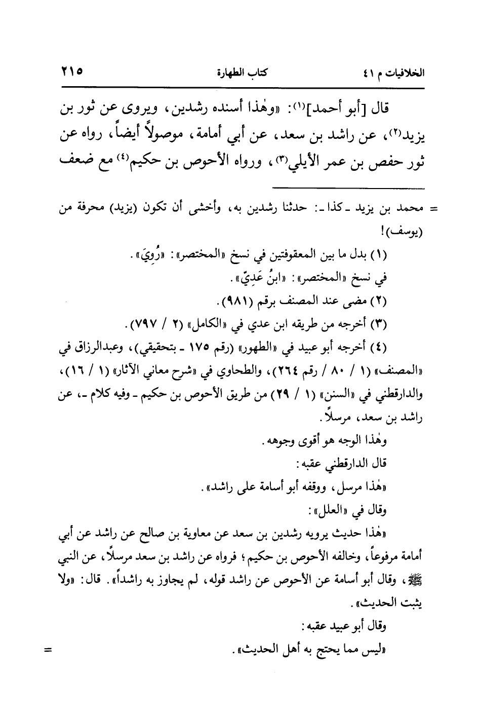 قال [أبو أحمد]: ((وهذا أسنده رشدين، ويروى عن ثور بن يزيد، عن راشد بن سعد، عن أبي أمامة، موصولاً أيضاً، رواه عن ثور حفص بن عمر الأيلي، ورواه الأحوص بن حكيم مع ضعف