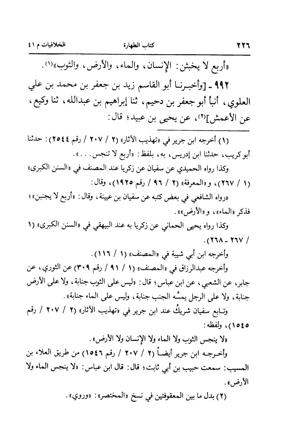 992- [وأخبرنا أبو القاسم زيد بن جعفر بن محمد بن علي العلوي، أنبأ أبو جعفر بن دحيم، ثنا إبراهيم بن عبد الله، ثنا وكيع، عن الأعمش]، عن يحيى بن عبيد؛ قال: