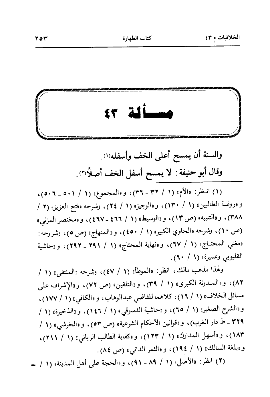 مسألة (43): والسنة أن يمسح على الخف وأسفله.