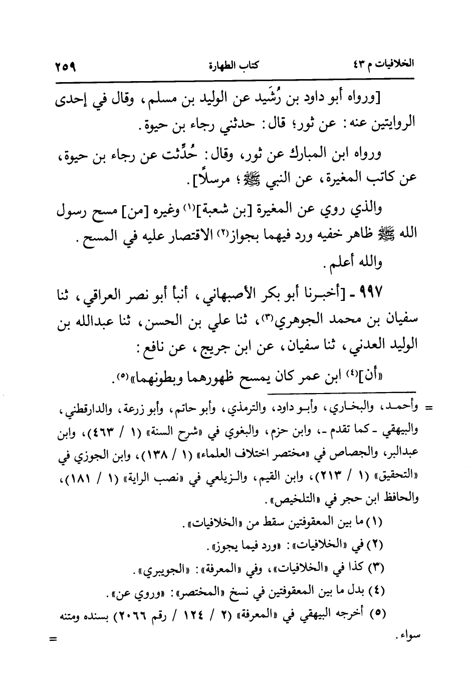 والذي روي عن المغيرة [بن شعبة] وغيره [من] مسح رسول الله صلى الله عليه وسلم ظاهر خفيه ورد فيهما بجواز الاقتصار عليه في المسح.