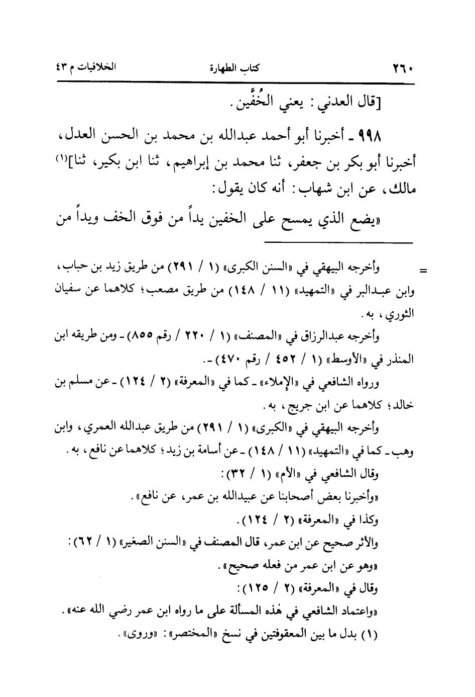 998- أخبرنا أبو أحمد عبد الله بن محمد بن الحسن العدل، أخبرنا أبو بكر بن جعفر، ثنا محمد بن إبراهيم، ثنا ابن بكير، ثنا] مالك، عن ابن شهاب: أنه كان يقول: