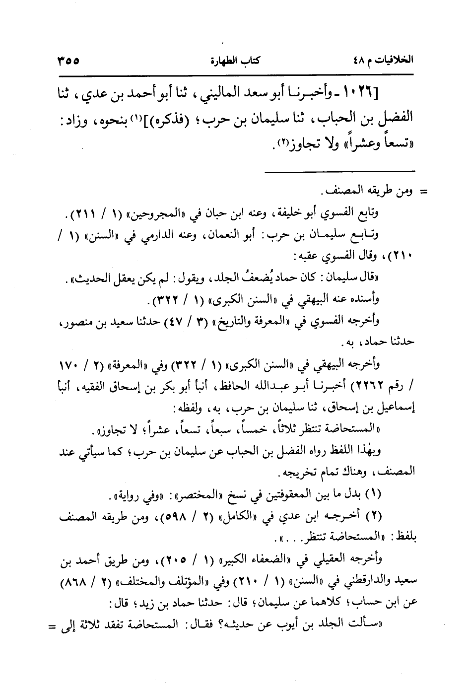 1026- وأخبرنا أبو سعد الماليني، ثنا أبو أحمد بن عدي، ثنا الفضل بن الحباب، ثنا سليمان بن حرب؛ (فذكره)] بنحوه، وزاد: ((تسعاً وعشراً)) ولا تجاوز.