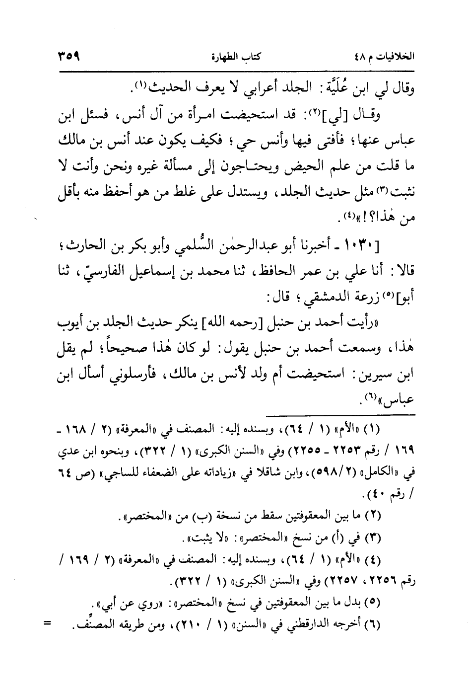 ((رأيت أحمد بن حنبل [رحمه الله] ينكر حديث الجلد بن أيوب هذا، وسمعت أحمد بن حنبل يقول: لو كان هذا صحيحاً؛ لم يقل ابن سيرين: استحيضت أم ولد لأنس بن مالك، فأرسلوني أسأل ابن عباس.