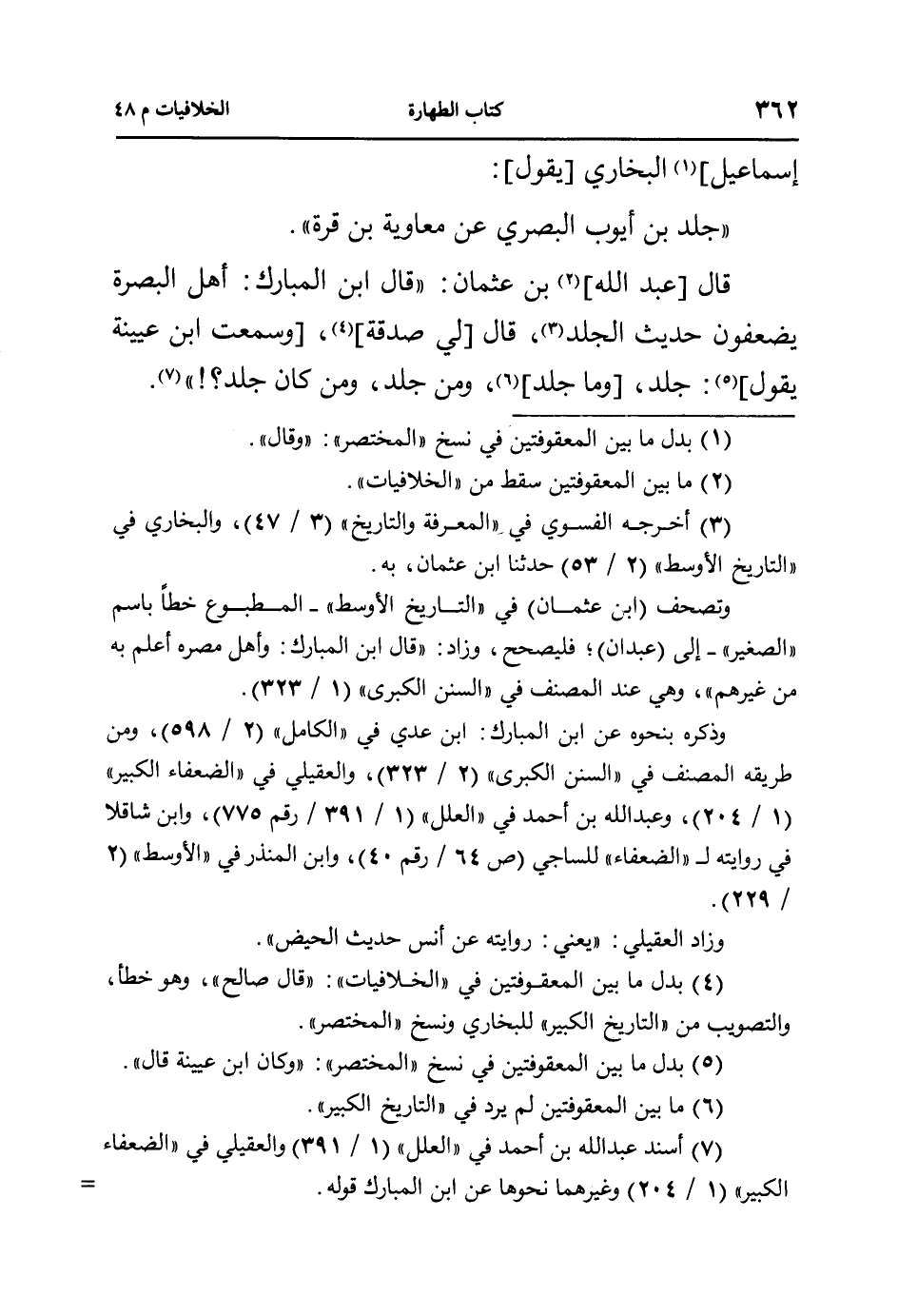 قال [عبد الله] بن عثمان: ((قال ابن المبارك: أهل البصرة يضعفون حديث الجلد، قال [لي صدقة]، [وسمعت ابن عيينة يقول]: جلد، [وما جلد]، ومن جلد، ومن كان جلد؟!)).