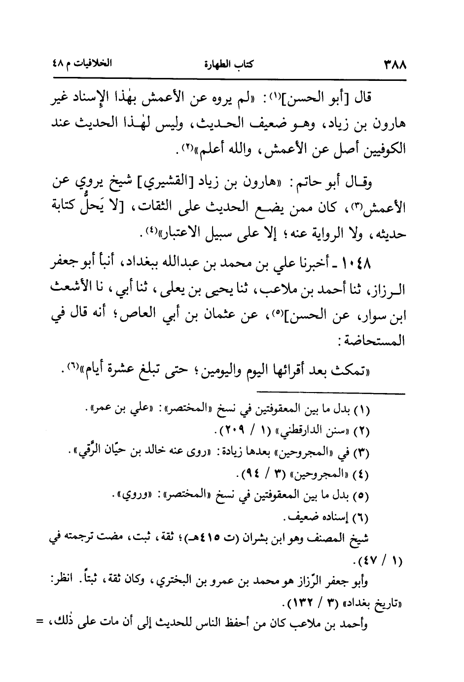 قال [أبو الحسن]: ((لم يروه عن الأعمش بهذا الإسناد غير هارون بن زياد، وهو ضعيف الحديث، وليس لهذا الحديث عند الكوفيين أصل عن الأعمش، والله أعلم)).