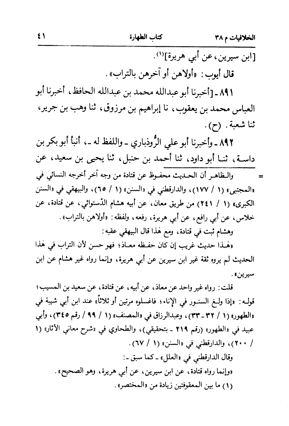 892- وأخبرنا أبو علي الروذباري -واللفظ له-، أنبأ أبو بكر بن داسة، ثنا أبو داود، ثنا أحمد بن حنبل، ثنا يحيى بن سعيد، عن