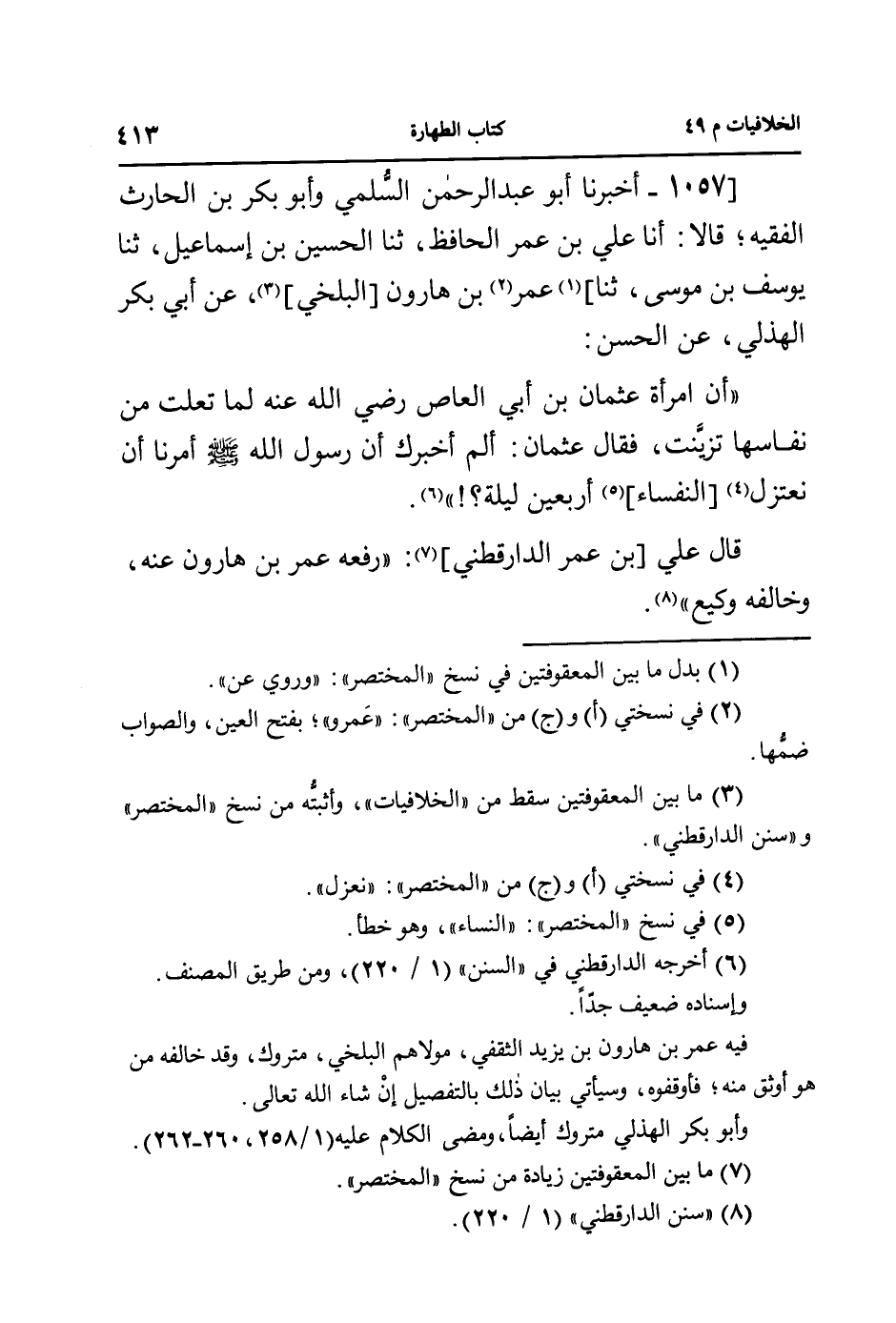 1057- [أخبرنا أبو عبد الرحمن السلمي وأبو بكر بن الحارث الفقيه؛ قالا: أنا علي بن عمر الحافظ، ثنا الحسين بن إسماعيل، ثنا يوسف بن موسى، ثنا] عمر بن هارون [البلخي]، عن أبي بكر الهذلي، عن الحسن: