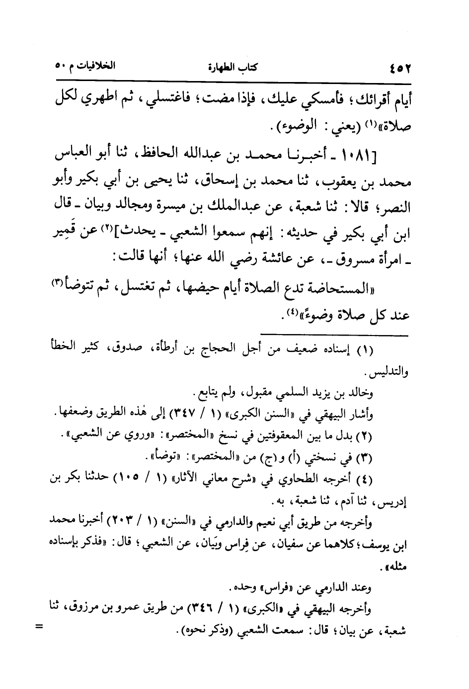 1081- [أخبرنا محمد بن عبد الله الحافظ، ثنا أبو العباس محمد بن يعقوب، ثنا محمد بن إسحاق، ثنا يحيى بن أبي بكير وأبو النصر؛ قالا: ثنا شعبة، عن عبد الملك بن ميسرة ومجالد وبيان -قال ابن أبي بكير في حديثه: إنهم سمعوا الشعبي- يحدث] عن قمير -امرأة مسروق-، عن عائشة رضي الله عنها؛ أنها قالت: