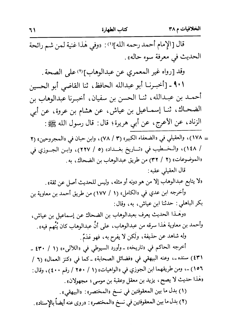 901- [أخبرنا أبو عبد الله الحافظ، ثنا القاضي أبو الحسين أحمد بن عبد الله، ثنا الحسن بن سفيان، أخبرنا عبد الوهاب بن الضحاك، ثنا إسماعيل بن عياش، عن هشام بن عروة، عن أبي الزناد، عن الأعرج، عن أبي هريرة، قال: قال رسول الله صلى الله عليه وسلم :