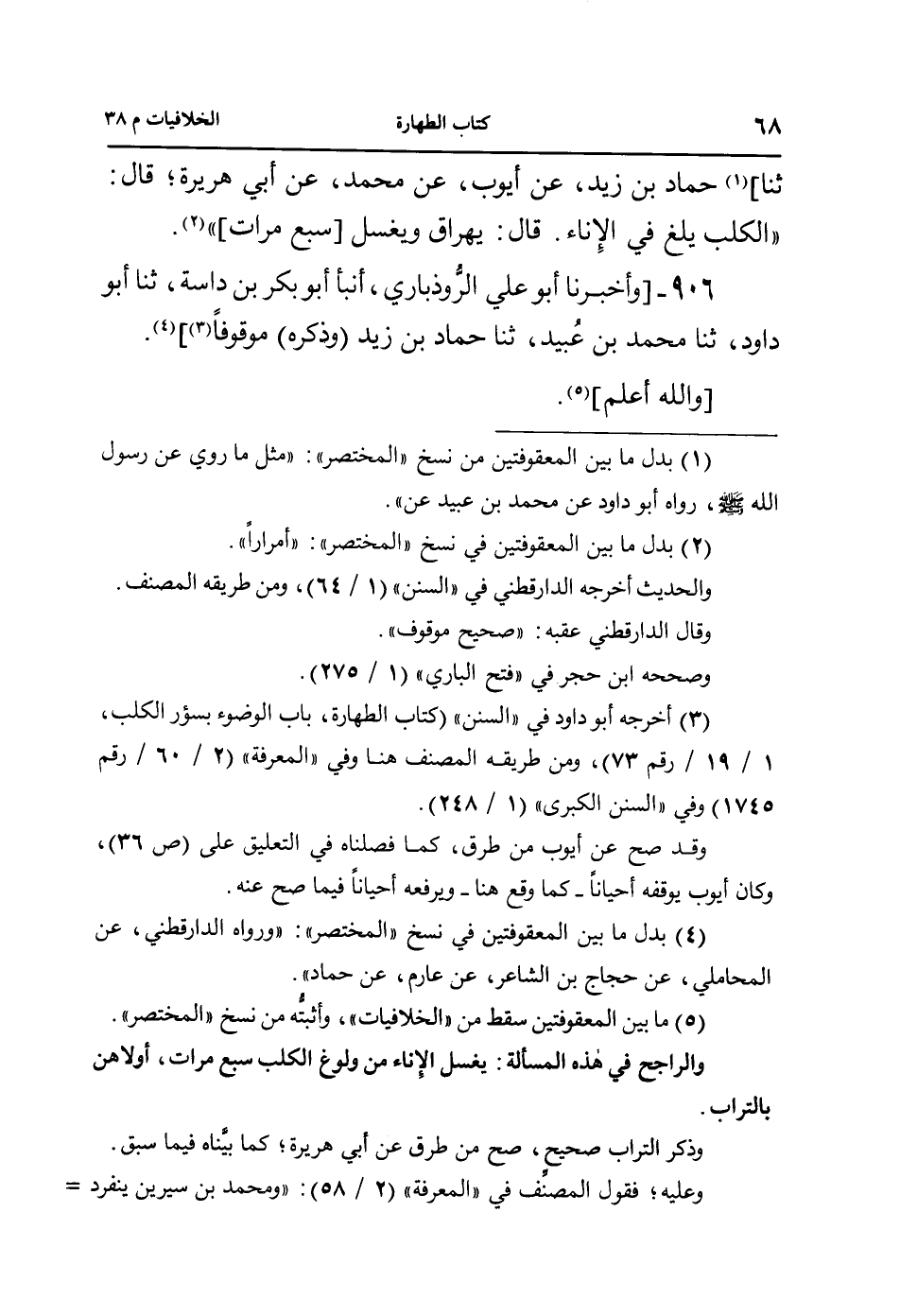 906- [وأخبرنا أبو علي الروذباري، أنبأ أبو بكر بن داسة، ثنا أبو داود، ثنا محمد بن عبيد، ثنا حماد بن زيد (وذكره) موقوفاً].