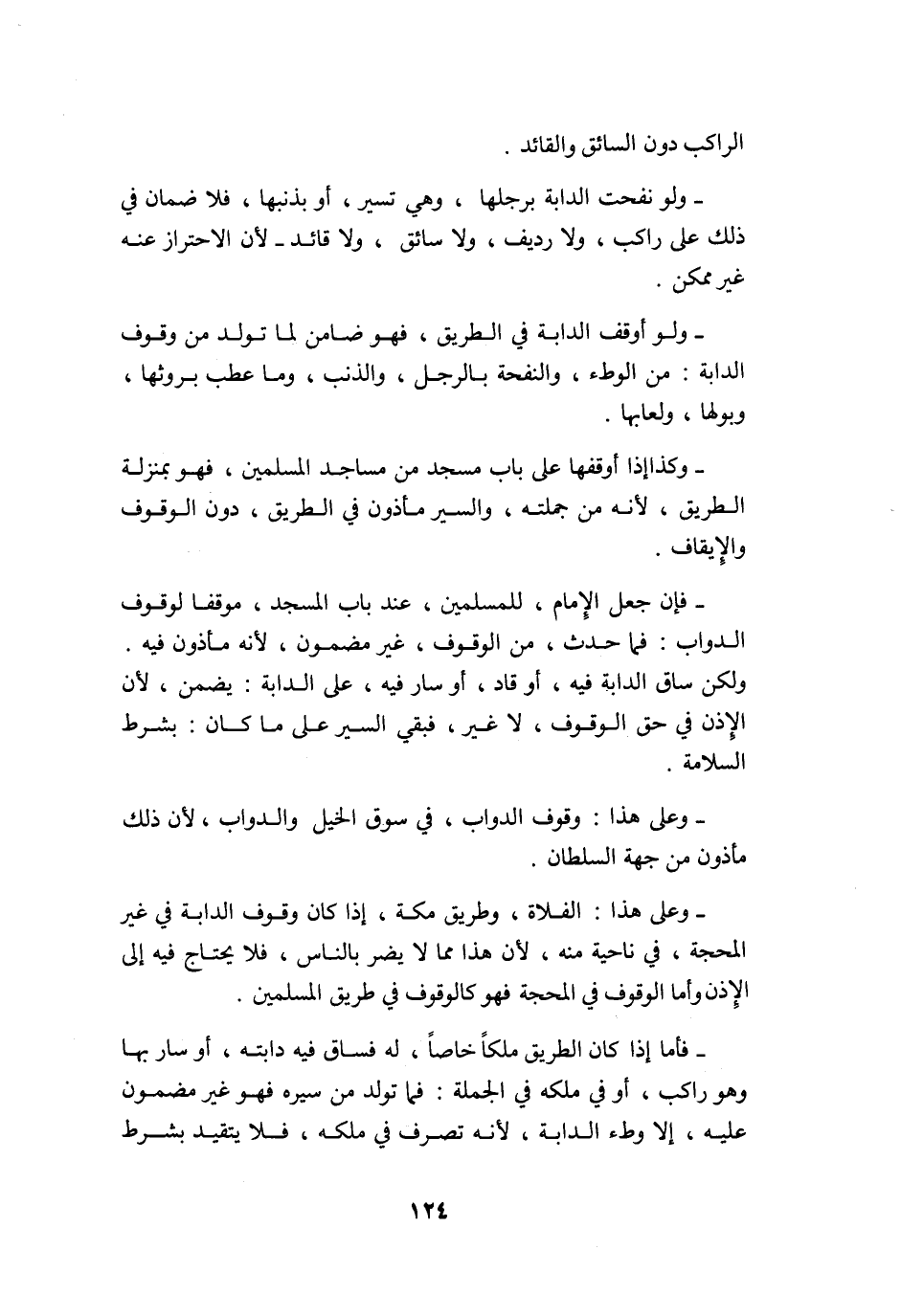وعَلى هَذَا الفلاة وَطَرِيق مَكَّة إِذا كَانَ وقُوف الدَّابَّة فِي غير المحجة فِي نَاحيَة مِنْهُ لِأَن هَذَا مِمَّا لَا يضر بِالنَّاسِ فَلَا يحْتَاج فِيهِ إِلَى الْإِذْن وَأما الْوُقُوف فِي المحجة فَهُوَ كالوقوف فِي طَرِيق الْمُسلمين