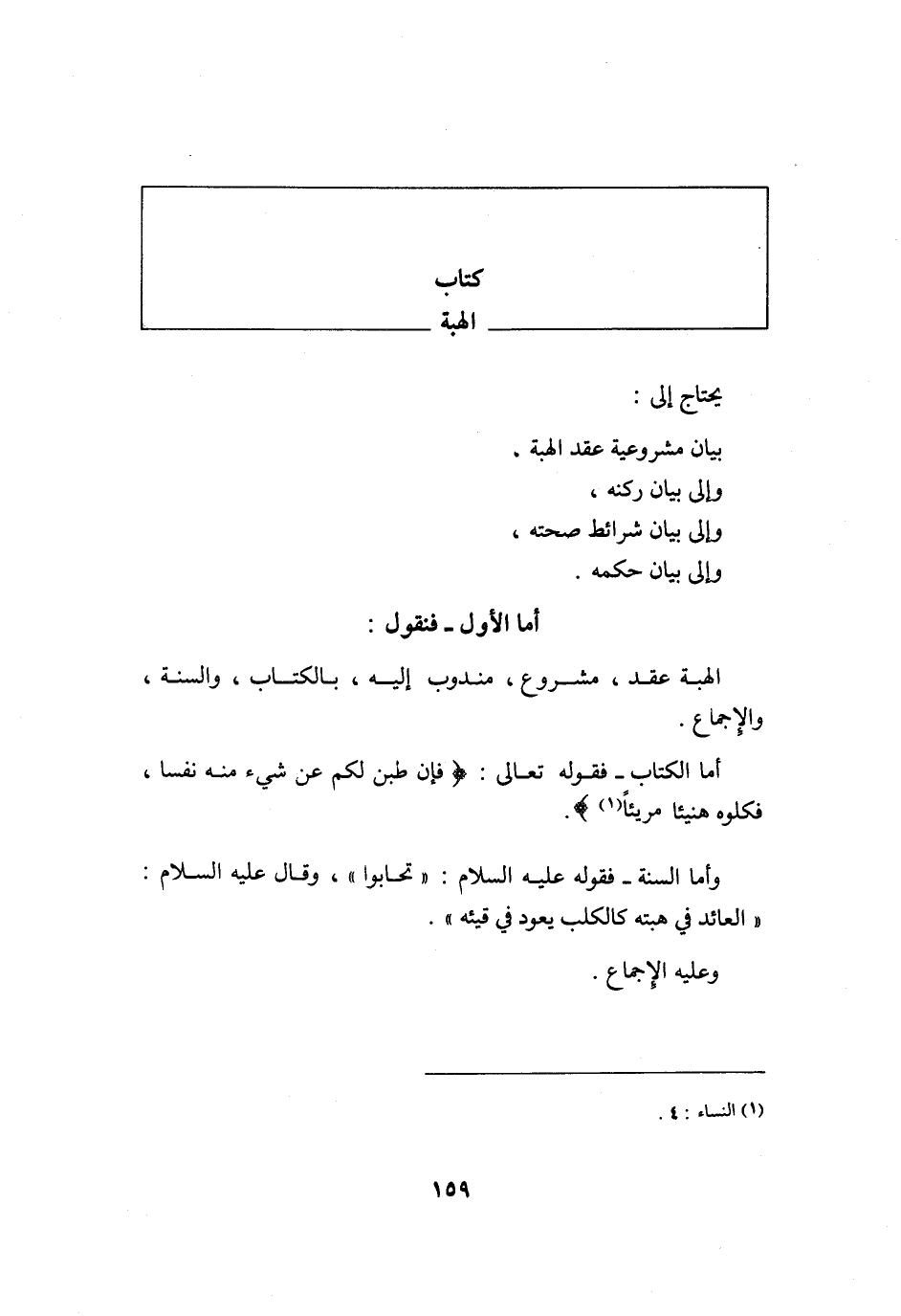 أما الأول فَنَقُول الْهِبَة عقد مَشْرُوع مَنْدُوب إِلَيْهِ بِالْكتاب وَالسّنة وَالْإِجْمَاع