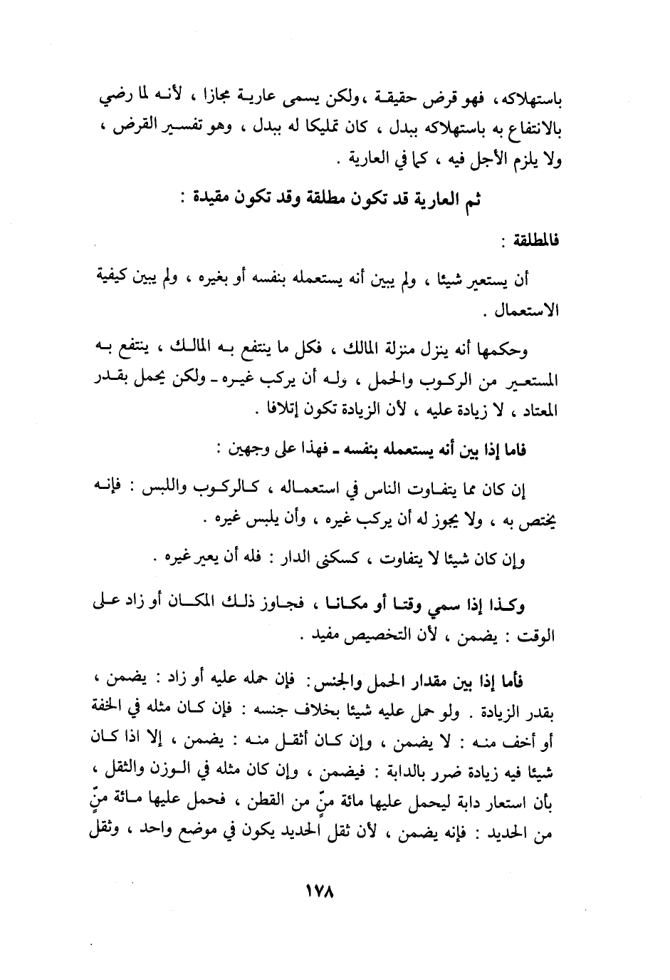 ثمَّ الْعَارِية قد تكون مُطلقَة وَقد تكون مُقَيّدَة فالمطلقة