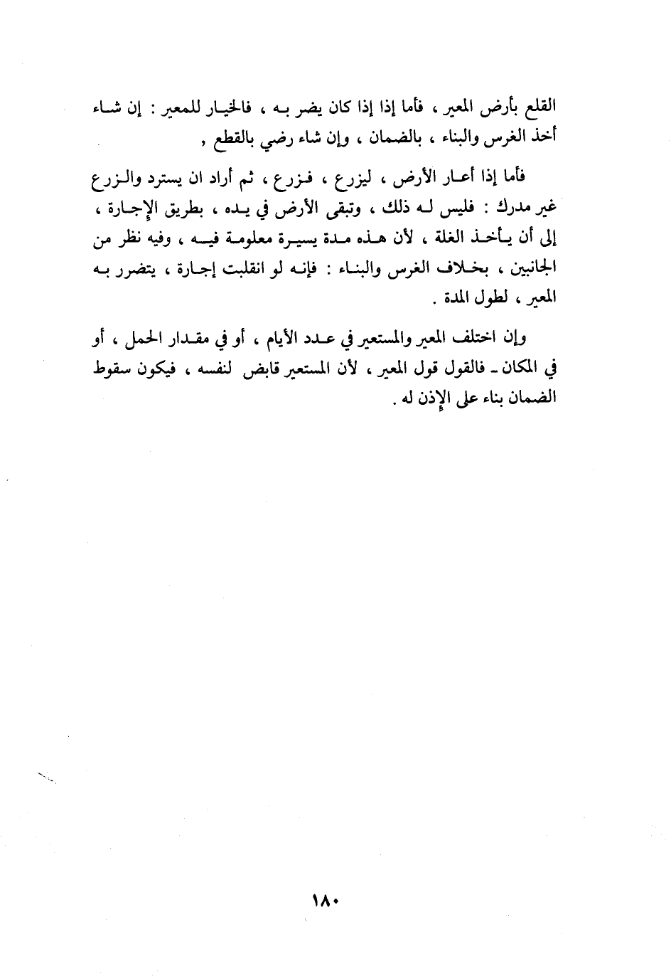 الْقلع بِأَرْض الْمُعير فَأَما إِذا كَانَ يضر بِهِ فَالْخِيَار للْمُعِير إِن شَاءَ أَخذ الْغَرْس وَالْبناء بِالضَّمَانِ وَإِن شَاءَ رَضِي الله بِالْقطعِ فَأَما إِذا أعَار الأَرْض ليزرع فزرع ثمَّ أَرَادَ أَن يسْتَردّ وَالزَّرْع غير مدرك فَلَيْسَ لَهُ ذَلِك وَتبقى الأَرْض فِي يَده بطرِيق الْإِجَارَة إِلَى أَن يَأْخُذ الْغلَّة لِأَن هَذِه مُدَّة يسيرَة مَعْلُومَة فِيهِ وَفِيه نظر من الْجَانِبَيْنِ بِخِلَاف الْغَرْس وَالْبناء فَإِنَّهُ لَو انقلبت إِجَارَة يتَضَرَّر بِهِ الْمُعير لطول الْمدَّة
